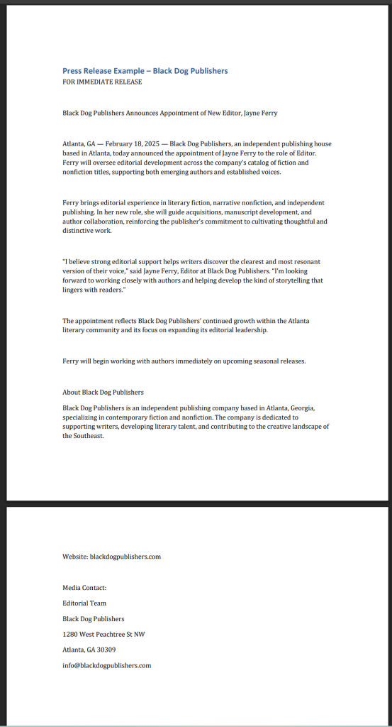 • Completed Press Release Example — your DFY portfolio piece to impress clients on day one.